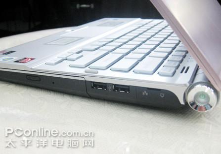 虽然索尼 VGN-FW19机身尺寸较大,但外观上没有给人16寸笔记本臃肿厚重的感觉,相比起其他15.4英寸产品的宽边设计,索尼VGN-FW显得轻巧精致,尤以窄屏幕边框显紧凑为特点。虽然机身顶盖采用了塑料的材质,同样也能对里面的屏幕给予最安全的保障。实际使用中轻压之下屏幕也不会出现水波纹,但略微遗憾的是机身底部却未能全部采用合金材质。索尼VGN-FW做工非常不错,包括接口细节等方面都没有含糊。转轴工艺较好,打开屏幕之后顶盖也不会有太大的晃动。