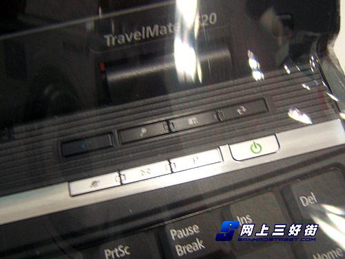 Acer TravelMate 4520(501G12Ci)的键盘右上角设置有开机按键和多个快捷按键,其中该机提供了三个效率键,分别是锁机键、演示键与备份键,可以帮助用户大幅提高工作效率。 为了方便网络视频的应用,该机屏幕上边框还设置有一颗30万像素摄像头,无论是网络视频会议,还是视频交友都非常方便。