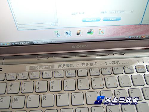 索尼VGN-SR16/P的键盘顶部设置有模式切换快捷键,这也是该系列产品的一大亮点。索尼VGN-SR系列笔记本具有个性切换功能,可在“商务模式”、“娱乐模式”、“个人模式”之间进行切换,并通过键盘上方的个性快捷功能键设置,切换各个模式下的应用程序,每个模式下有5个转换按钮供用户根据喜好分配应用程序,并可以对三个模式里的墙纸以及图标等进行设置,为用户操作提供更多的方便,也增加了该机的实用性与易用性。