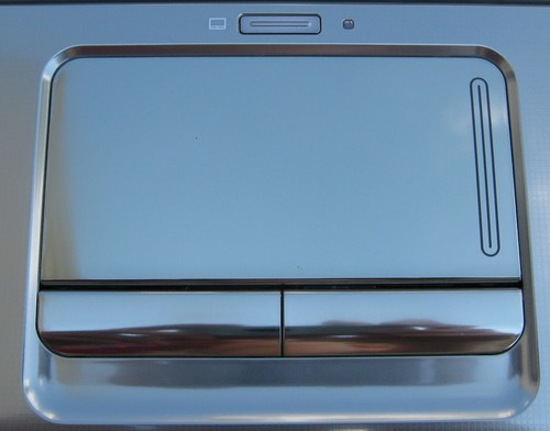 惠普dv5t笔记本的触摸板设计了左右上下翻页区域,采用感应区材质,手感十分细腻。另外在触摸板上方设计了鼠标禁用按键,用户在长时间键盘输入时,可以通过此键将触摸板设置为睡眠状态,有效防止误触。