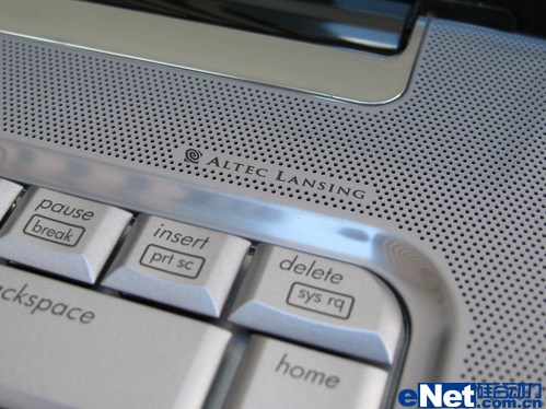 惠普dv5t采用奥特蓝星扬声器,且扬声器的形状设计比较特殊,不仅从键盘上方的区域延续到了键盘两侧,我们甚至从机身后侧靠近转轴处也能看到扬声器的身影。较大的面积带来了更佳的立体声体验,我们通过《被遗忘的时光》和《高山流水》进行低频、高频的测试,发现高音表现尤为出色,全程没有出现破音现象。