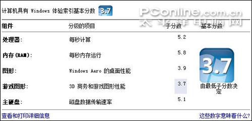 VISTA自检测试中,双模测试下最大的区别当然是显卡方面,X4500HD桌面图形达到3.9分,表现不错;9300MGS测试得分4.4分,还是十分理想的得分。从这看来,顺畅运行VISTA自然是完全不在话下了。再看看处理器P8400的测试成绩,4616的得分表现中规中矩,正常;而这一性能亦足以为整机的性能提供最底层的强劲核心动力。