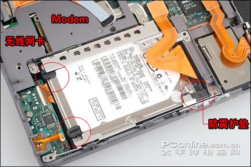 硬盘旁边下方是无线网卡和Modem所在地