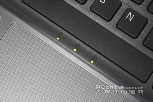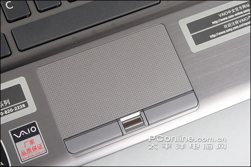 宽大的触摸板加入了小凸点底纹设计,手感光滑而不油腻。实际操作中发现触摸板触控灵敏,反映速度快,手感不错。不过十分遗憾的是,索尼Z15似乎并没有提供一个可以关闭触摸板的快捷键或功能键,因此在鼠标操作的时候很容易与触摸板互碰产生误操作,这一点迫切需要改进。下方两个辅助按键手感则中规中矩。