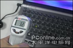 不过索尼Z15让我们看到了什么叫做强者!索尼Z15的散热控制表现完全可以用“完美”来形容——在室温26度环境下,经过近3小时的测试拷机,键盘C面几乎完全没有任何升温现象,平均温度控制在30度以下(一台普通14寸笔记本平均温度在38度左右);尤其是采用了镁铝合金材料的两边腕托,双手触碰上去甚至还有一丝丝冰凉的感觉,无敌的散热控制表现呀,甚至一向在散热控制方面表现优异的富士通也要感到些许汗颜。