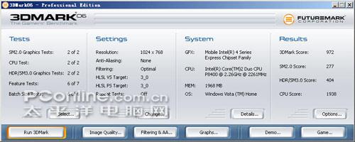 索尼Z15支持双显卡切换,因此我们下面的相关测试将对两种模式进行性能上的对比。全程测试均在标配系统中进行,设置最高性能模式并关闭所有影响测试进程的开机程序。关于双显卡切换技术的更多分析请看:《双显卡解密 13寸迅驰2新本联想IdeaPad U330深入评测》。