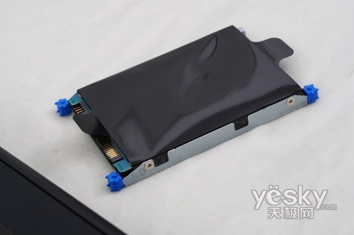 最后我们来看看HP550的硬盘,数据对于用户来说至关重要,笔记本电脑对硬盘的保护一直是在不断改进的,神舟HP550的硬盘在物理保护方面值得称赞,四个顶角都设计了缓冲橡胶,硬盘平时就如同架空一样,抵御各个方向带来的冲击。