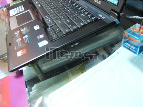 华硕的一些大机型,接口特别是USB会安排不少在后面,这多少会造成使用上的不方便,笔记本的右侧为光驱,左侧有UDB 网络等等。