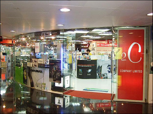 皇室堡专卖苹果在大陆内非常出名,11楼和12楼都有不少商家专做苹果电脑的。从电梯直上,第一眼看到的就是2C,这家店在苹果官网上也有介绍,算是比较大型的连锁。