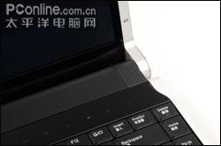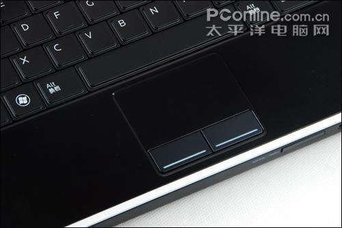 触控板表面采用磨沙处理,同时设置了上下和左右滚屏控制区,不过相对机身尺寸来说,触摸板显得稍微有点小,不过触摸板的操作感受还是相当不错的,滑动灵敏,反应快而清晰。触摸板下方的两个鼠标按键,行程和弹性也都不错,不过相对有点偏硬。