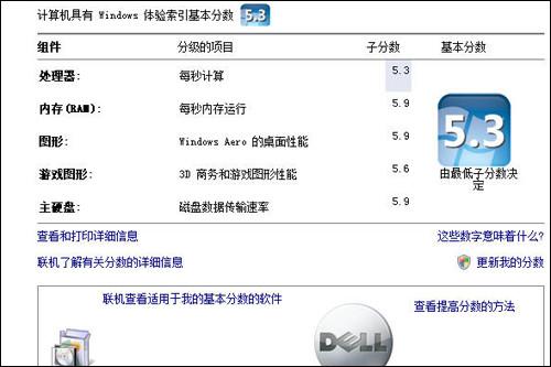 VISTA自检测试中最低分数在于处理器,但仍取得5.3的高分;而桌面图形取得了目前在移动领域能看到的最高分5.9分。