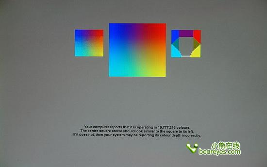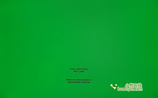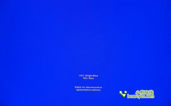 同时,这项测试也可以直观地查看黑白对比度效果,因为从理论上说,对比度就是极白与极黑的比值,从这个测试图中可以很明了的看到黑白两个极色的控制比较到位,两个大写的I字相对于周边都有一种很明显的外凸感,说明对比度的表现良好。