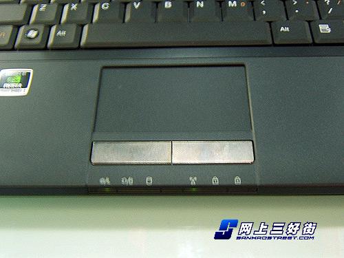 华硕X59Q32SL-SL采用一体化鼠标按键+触控板,在触控板上设置有纵向滚动条,便于用户浏览网页和文档。在触控板下方设置有状态指示灯,包括电源、电池、无线等,便于用户了解系统运行情况。同时,在键盘顶部也设置有状态指示灯和快捷按键,方便用户操作。