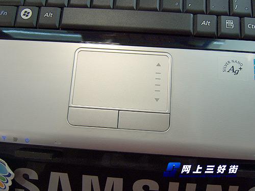 三星R458-DS0E采用2键鼠标+触控板,看起来精致、时尚。该机触控板上设置有纵向滚动条,便于用户浏览网页、文档等。该机键盘右上角设置有开机按键,圆形按键在开机状态下会发出蓝色光,视觉效果极佳。