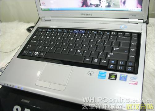 三星R458整机做工十分细腻,在键盘下方的托腕处,暗含了波浪式纹理,更加美观,采用了Ctrl+Fn,状态指示灯位于左掌托下方。另外,该款三星 R458-DS19机身上方还备配了一枚130万像素的摄像头,方便了用户随时随地进行娱乐视频聊天或者视频会议的需求。