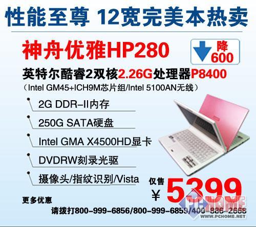 配置上,优雅HP280采用了Intel酷睿2双核P8400处理器(2.26GHz)、Intel GM45芯片组和2G内存;存储上,250GB硬盘和DVD刻录机;显示上集成了Intel GMA X4500HD显卡和集成一颗130万像素高感光摄像头,再配合双阵列式麦克风,可有效过滤一米内的噪音,为您打造优质的通话和录音质量,组成完美的视频语音系统,让您和亲友的网上交流沟通无阻。而本本的两个扬声单元设计在了屏幕下方,令音源和图像距离更近,给人更真实的临场感受。