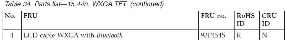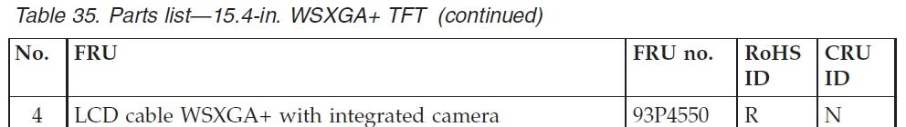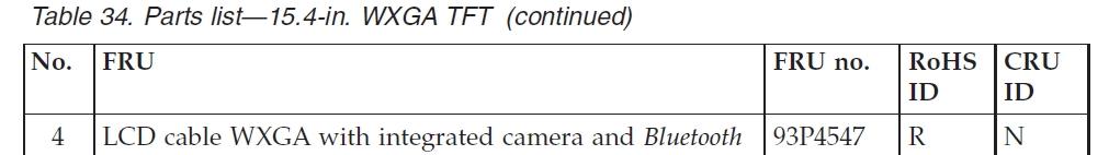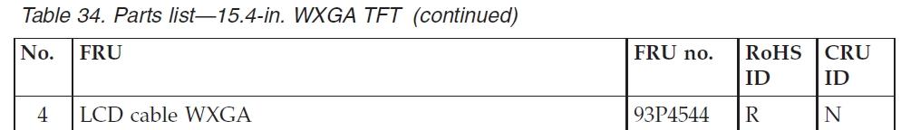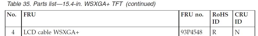 以下是R61/R61E/R61I 15.4" WXGA机型屏线的FRU号: