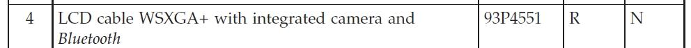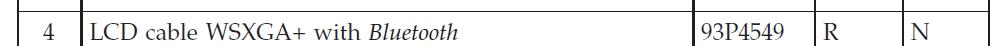 下面是FRU:93P4451的有蓝牙接口的WSXGA+屏线:
