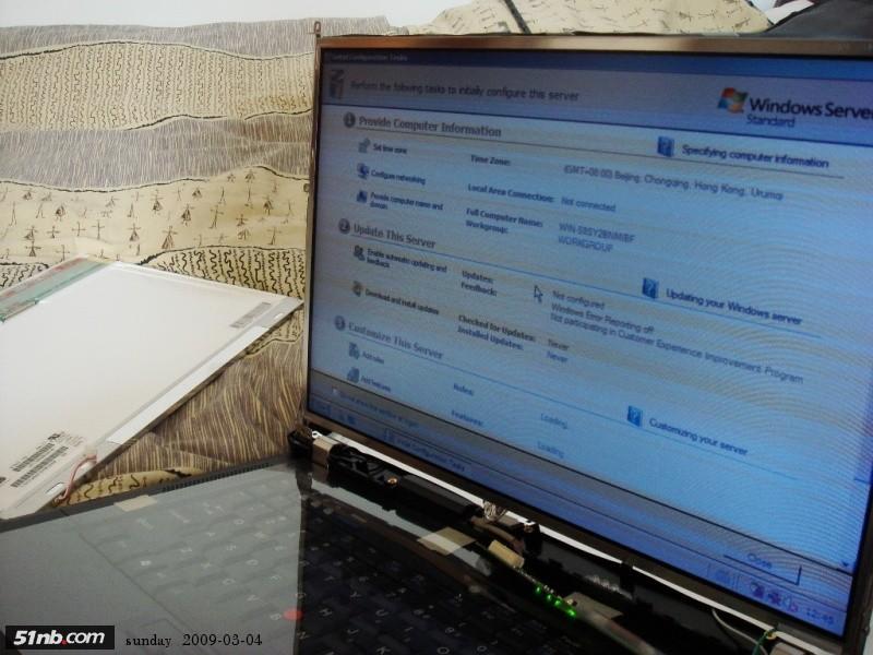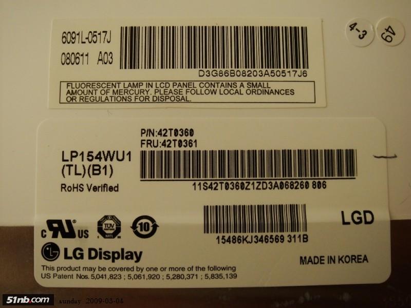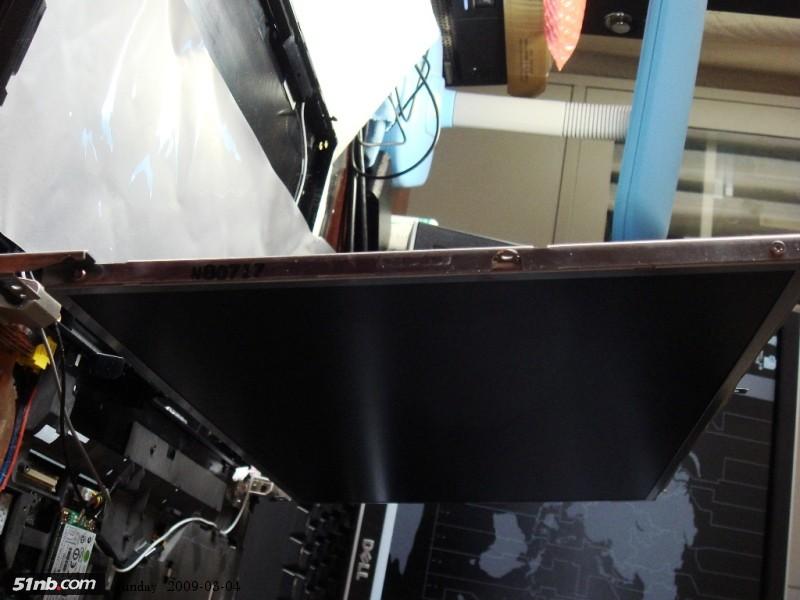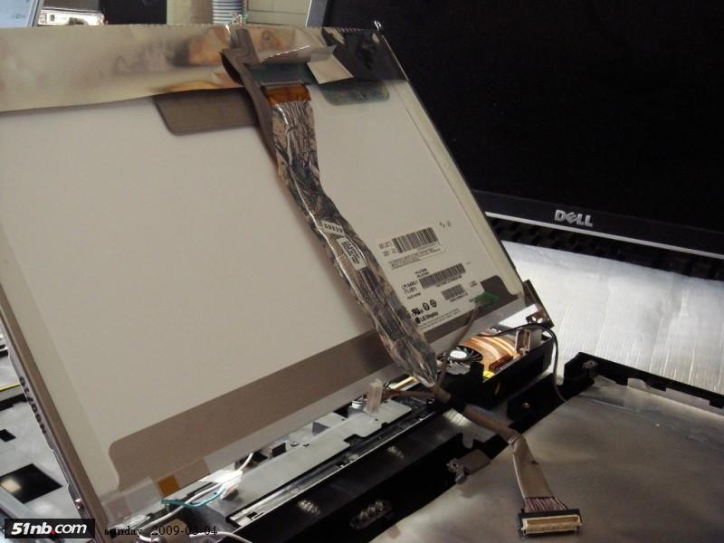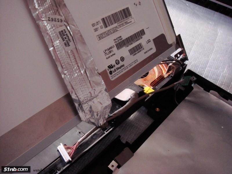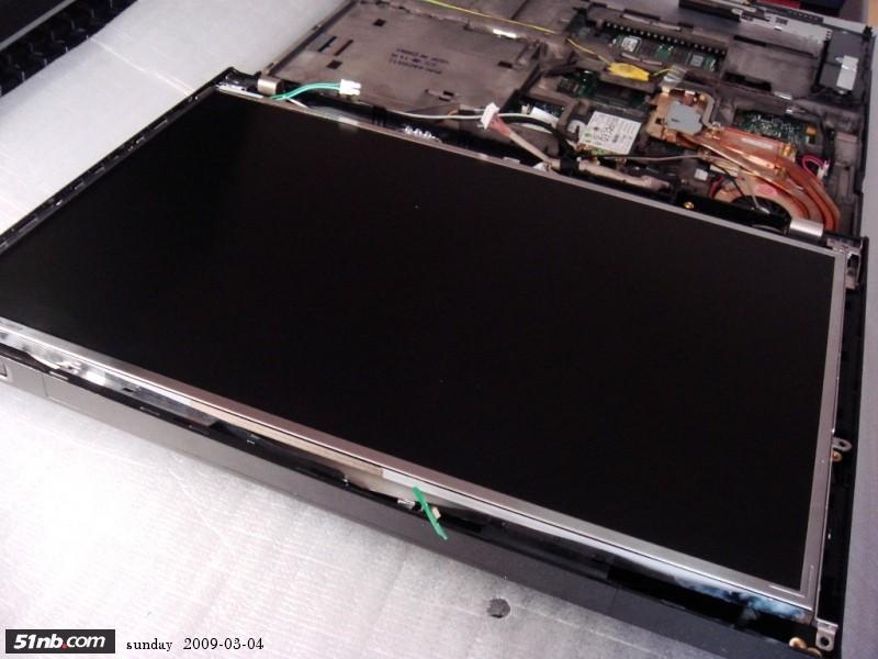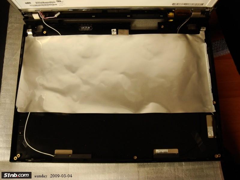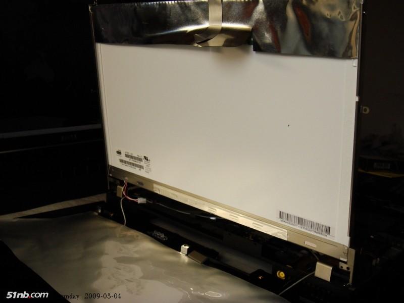 从zhangyongtao那里折腾来一块全新的15.4" WUXGA屏LP154WU1-TLB1,分辨率1920X1200。接上R61E的原配屏线试机时,出现杂乱的花屏,差点以为自己中奖了 。