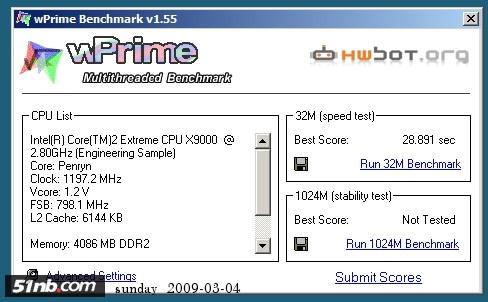 CPU测试软件为CPU-Z、SP2004、wPrime。