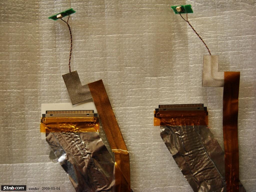 下面是上述两种屏线的对比:上方是R61E 7649-A56的原配屏线,下方是有蓝牙接口的WSXGA+屏线