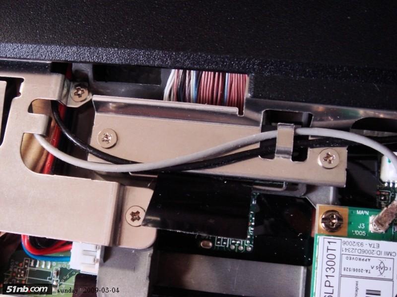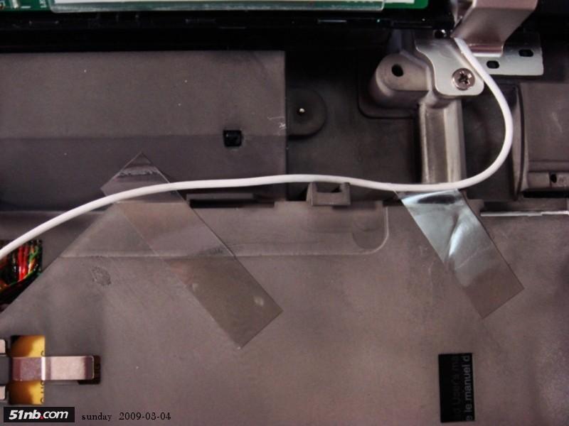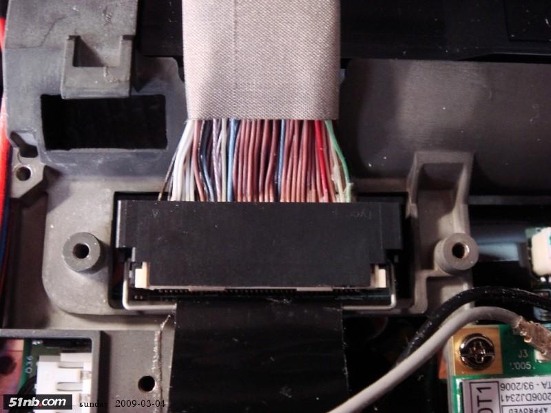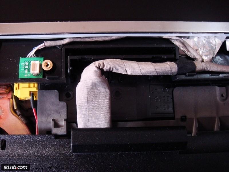 现在我们来看看屏线的实物图片! 作为Thinkpad中的廉价机型,屏线采用如此结构,难道只是处于降低成本考虑?Thinklight灯线竟然是不折不扣的“飞线”!