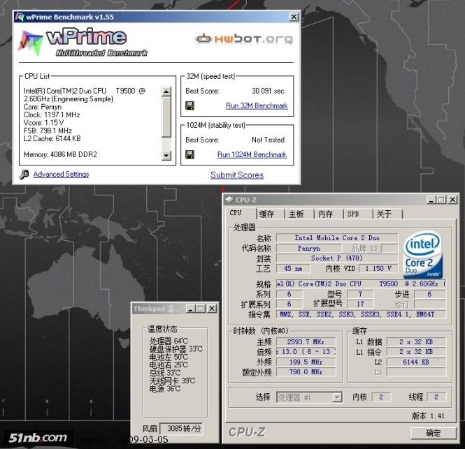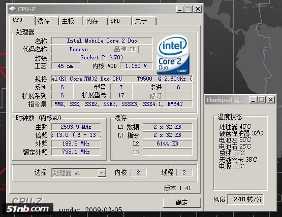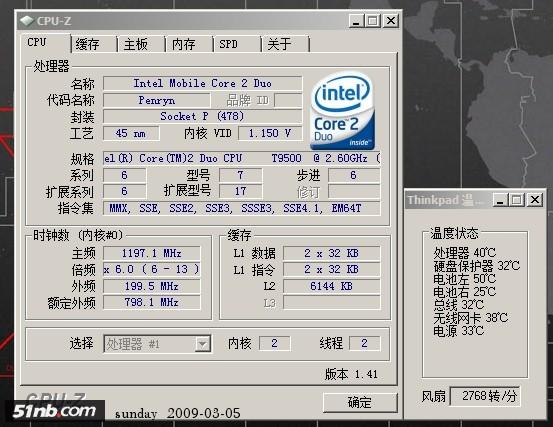 X9000、T9500虽然都是45nm技术,但是发热量不可低估。R61I 7649-A56原配风扇,大量使用了工程塑料,将会严重影响到高频CPU的散热。