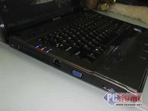 接口和网络上,3个USB2.0接口、RJ11,RJ45、抗噪麦克风,立体声音频输出插孔、VGA、多合一读卡器、ExpressCard;支持802.11b/g(54Mbps)无线协议和100Mbps网卡。