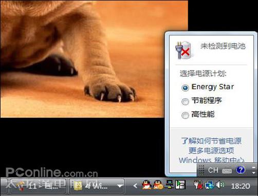 1. 单击系统托盘中的电源图标,将会弹出如图14 所示的浮动窗口,这里提供了三种不同的电源计划。默认设置是“已平衡”,当计算机长期处于闲置状态时,它会自动切换到省电模式,这是一种比较聪明的省电方案。“高性能”模式下,系统速度最快,当然耗电也是最大的;“节能程序”,则可以使电源消耗最小化,不过此计划会在一定程度上降低系统的性能,毕竟很难两全其美。