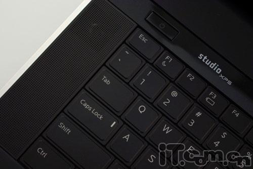 Studio XPS 16的键盘是我用过的所有桌面替代型笔记本键盘比较好用的一款,键程和弹性都非常好,键盘很结实,只是在Enter键附近稍微有点弯曲。不像 Studio 17,Studio XPS 16没有采用独立数字键,而采用全尺寸键盘,并且在键盘的两端设置了扬声器,让整个键盘看起来不是那么大,另外还配备了白色LED背光让你在黑暗中打字也非常舒服。