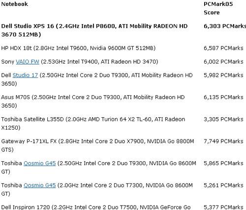 ATI HD 3670独立显卡广受游戏爱好者以及3D绘图工作者的喜爱,下面的这些基准将让更了解Studio XPS 16系统性能和市面上的其他系统的区别。
