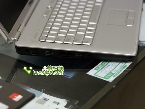端口方面:4个USB 2.0端口、1个IEEE 1394端口、1个Expresscard/54插槽、多功能读卡器、网卡和调制解调器插孔、耳机和麦克风插孔、VGA端口和HDMI端口等。