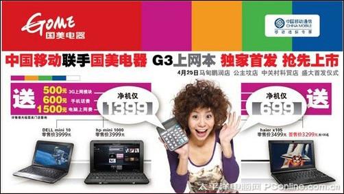 移动3G定制上网本大部分机型都在国美有售,传统卖场很难看到其踪迹