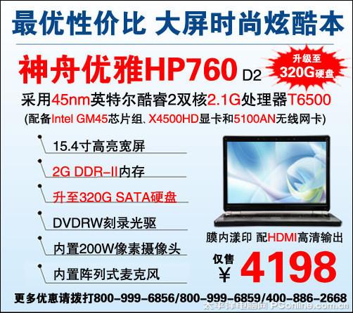 升级至320G硬盘 神舟HP760迅2仅4198!