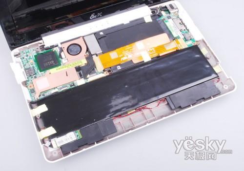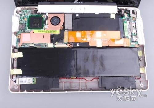 从我们内部设计来看,华硕的确是在板卡设计上做了高度集成,以此来换取安置电池和硬盘空间,不过由于内部组件设计非常密集,因此贝壳机在加入 3G模块加入会变的非常困难。在市场中销售华硕3G上网本也基本是华硕EeePC 900或1000的产品,而后续贝壳机能够顺利加入3G模块还是个疑问。