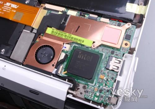 旁边风扇下面是N280处理器,上面附着铜片以及风扇。