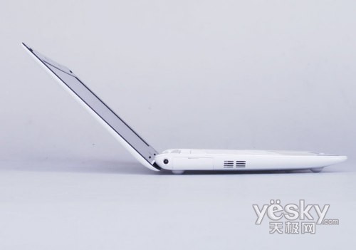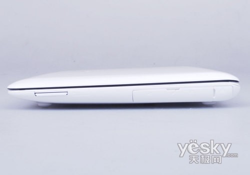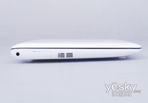 接口部分是1008HA最有创新的地方。其实这种薄边的设计拥有漂亮轻薄的外观,这一点是大家都认可的优点。不过采用这种设计还有给产品带来一 个严重缺陷,就边缘化的接口排布非常困难。我们还会记得苹果 Macbook Air为了追求这种极致的设计而缩减了大量接口。