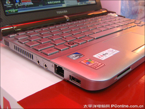 细节方面,这款东芝 Satellite NB200上网本屏幕的上方设计配置了摄像头以及麦克风,虽然没有主流笔记本的倾角设计,但是效果还是应该得到肯定的。接口方面,这款东芝 Satellite NB200机身的左侧设计配置了D-SUB模拟视频输出接口、耳麦接口、RJ45网卡接口、一个USB接口,而多功能读卡器则设计到左侧的前方,更方便了用户的使用。