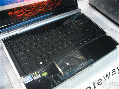 外观方面,该款Gateway NV4402c采用了全新靓丽烤漆的主流模具设计,A面在深棕灰色里嵌入独特的暗纹图案,并且转轴以及C面边框采用了银色金属设计,更显时尚硬朗。而内饰方面,Gataway NV4402C电源依然设计在银色转轴处,屏幕下端为钢琴烤漆设计的触摸式快捷键,其提供的节能、备份等独特功能,为用户提供了诸多便利。