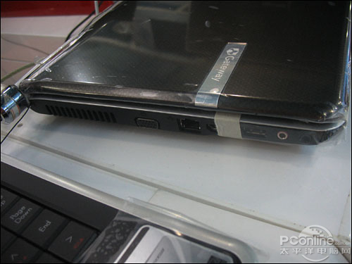 接口部分,Gateway NV4402c总拥有3个USB 2.0接口,其中包括1个e-SATA/USB高速接口,1个HDMI高清视频输出接口,1个Express Card插槽,1个RJ11,1个RJ45,1个VGA接口,六合一读卡器以及耳机与麦克风接口。网络方面,则内置10-100M网卡、802.11b/g无线网卡。