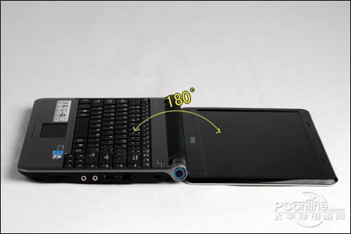 明基U121采用了下沉式转轴设计,转轴阻尼力偏小,使得机身上盖开启较为容易,但屏幕部分并不会出现严重晃动情况。此外,机身最大开启角度为180度,用户在观看上有着较高体验。