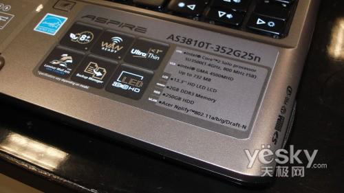 编辑点评:Aspire 3810T(具体型号Aspire 3810T-352G25n)仅重1.6公斤左右(含电池)。采用英特尔酷睿 单核处理器SU3500,搭配2GB内存和250G硬盘,并配备了13.3英寸屏幕。
