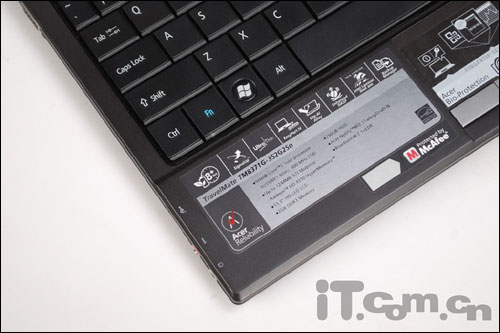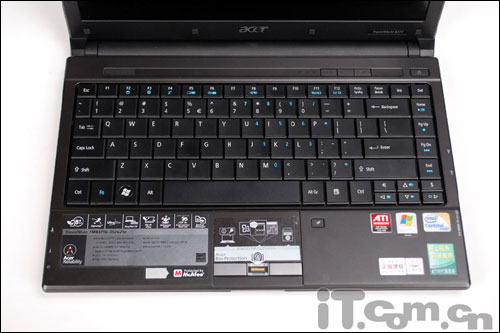 宏碁TM8371G配备着一副全尺寸的Acer标准键盘,尽管看上去没有时下流行的“巧克力键盘”那般精致,但操作起来手感还是不错的,键位设计较为宽大,弹性十足而不显生硬,可进用来进行高轻度输入操作。
