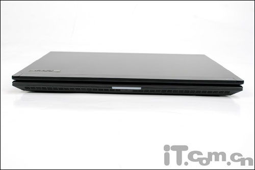 机身前侧是整机轻薄区域,不具备端口配备条件,仅仅设计有一个LED电源状态灯,状态灯两侧则是通风栅槽,方便机身内部空气流通。