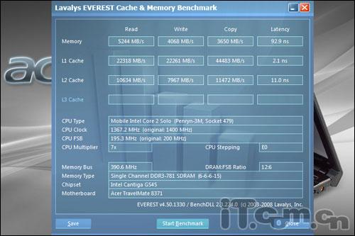 就PCMark05的整体性能得分而言,这款宏碁TM8371G在整体性能上还是相当不错的,尤其显示核心没模块,基本达到了全功能笔记本的水平。在整体性能上,要比上网本强出很多,而且更接近全功能笔记本。