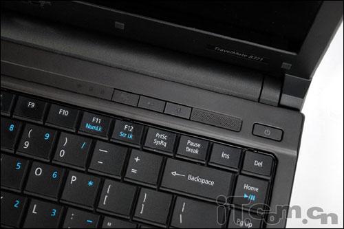 宏碁TM8371G配备着一副全尺寸的Acer标准键盘,尽管看上去没有时下流行的“巧克力键盘”那般精致,但操作起来手感还是不错的,键位设计较为宽大,弹性十足而不显生硬,可进用来进行高轻度输入操作。