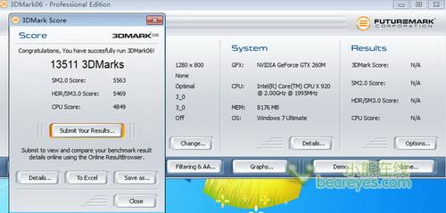 可想而知,四核i7处理器+顶级显卡将给我们带来怎样的震撼。为了让大家在概念与以往机型能够有一个对比,我们进行了3DMark 06测试。很显然,13511分的成绩绝对可以说是当今笔记本产品中的佼佼者。这也让我们接下来的游戏测试更加富有挑战性。