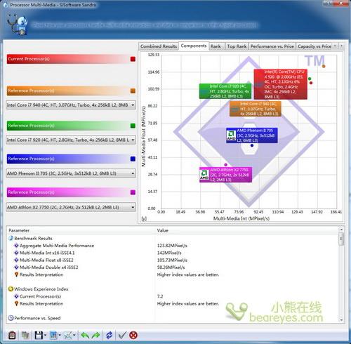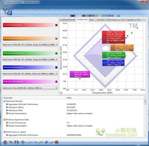 在测试之前我们先给大家介绍一下我们测试的软件以及测试环境。我们将要进行的测试全部是基于正版Windows 7 Ultimate 64位操作系统下进行。我们在本次测试中选用的测试软件包括:PCMark05检测机器整体性能; SiSoft Sandra测试各单项部件性能;显示性能部分采用3DMark系列来测试;SUPER PI、CPU Z测试处理器性能等。首先进入的是处理器测试部分。