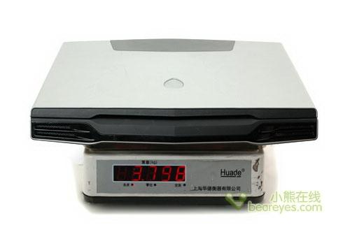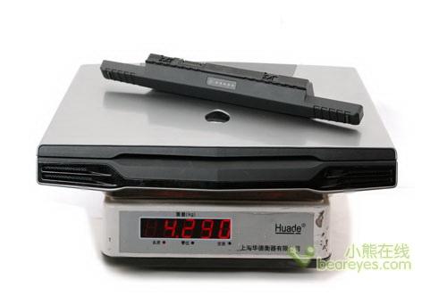 我们前面曾经就已经提到过,这款戴尔Alienware M15x是目前15英寸笔记本中最大的产品,所以在机身重量上也就可想而知了。我们通过测试,该机在配备了一块电池的情况下达到了4.29Kg,基本可以说无移动性可言。