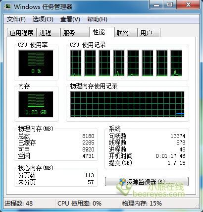 从Windows任务管理中我们就可以清楚的看到, 戴尔Alienware M15x采用了三款i7处理器中规格最高的英特尔酷睿 i7 920XM处理器,该处理器拥有四核芯八线程,完全满足了我们各种不同应用。